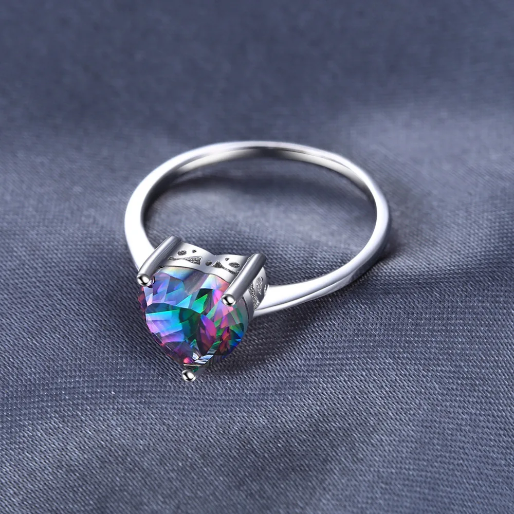 Heart Rainbow Mystic Quartz Solitaire 925 Sterling Silver Rings